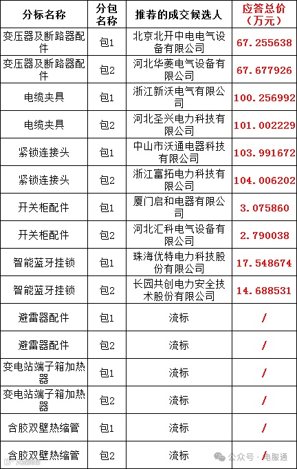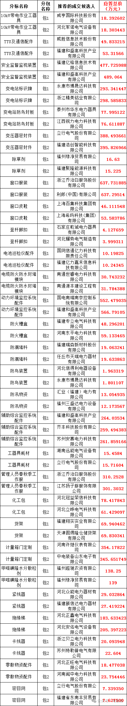 国网福建省电力有限公司2024年第四次电网零星物资框架竞争性谈判采购评审工作已经结束,依据《中华人民共和国招标投标法实施条例》《招标公告和公示信息发布管理办法》对成交候选人公示的规定,现将评审委员会推荐的成交候选人予以公示,公示期3日。