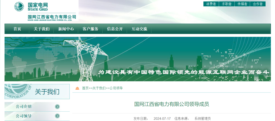 7月份,国网江西省电力有限公司的官网,公司领导的信息也有更新,总经理一职已变动:郑佩祥任国网江西省电力有限公司董事、总经理、党委副书记,调整前为国网河南省电力公司董事、党委副书记;