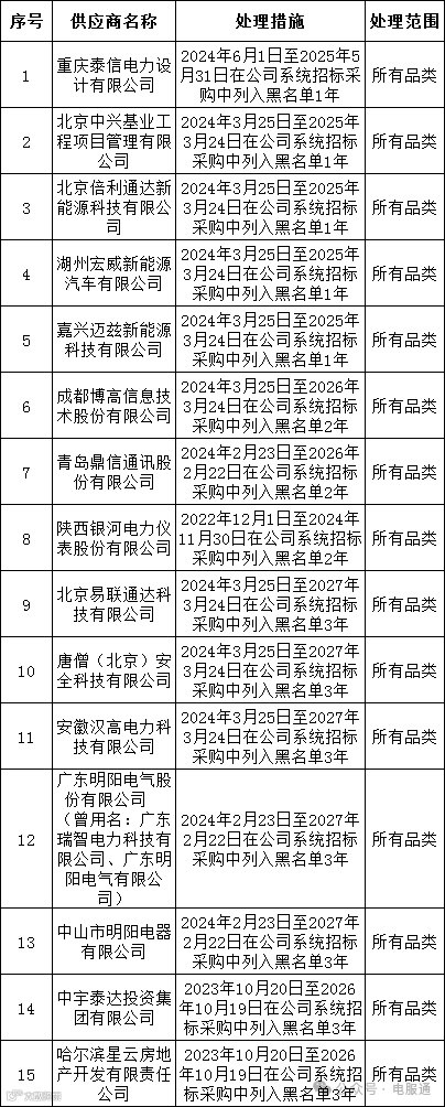 为净化招投标环境,促进供应商诚实守信、依法经营,现将因行贿行为被纳入黑名单且处于不良行为处理期的供应商名单,予以曝光,详见下表。