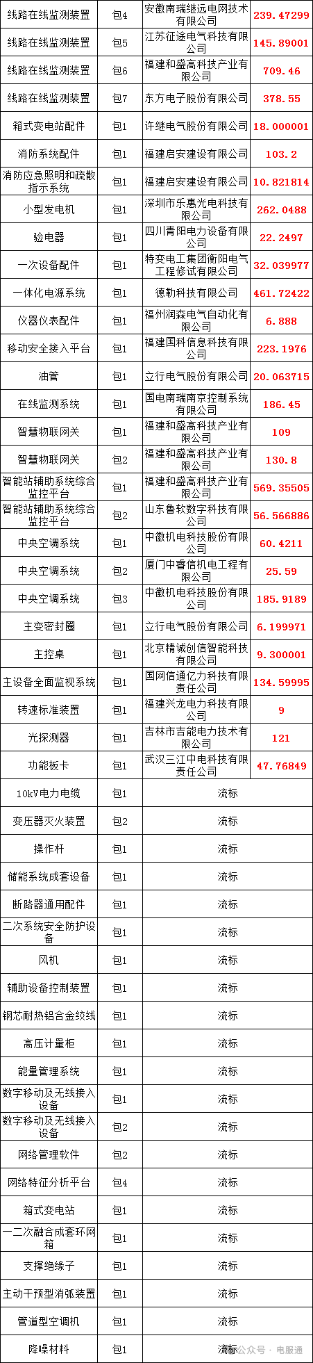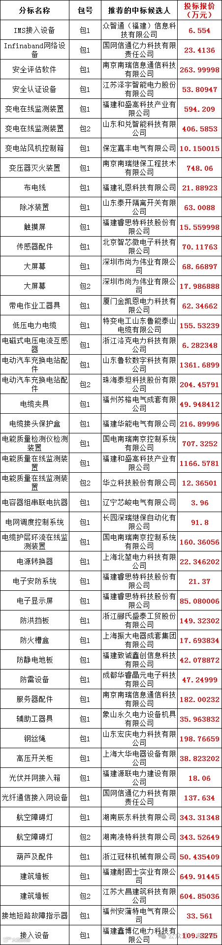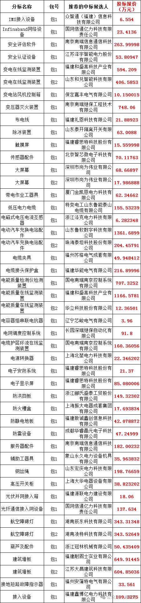 国网福建省电力有限公司2024年第五次物资公开招标采购评标工作已经结束,依据《中华人民共和国招标投标法实施条例》《招标公告和公示信息发布管理办法》对中标候选人公示的规定,现将评标委员会推荐的中标候选人予以公示,公示期3日(2024年11月19日至2024年11月22日)。投标人或者其他利害关系人若对评标结果有异议的,请在中标候选人公示期间以书面形式(传真)提出。