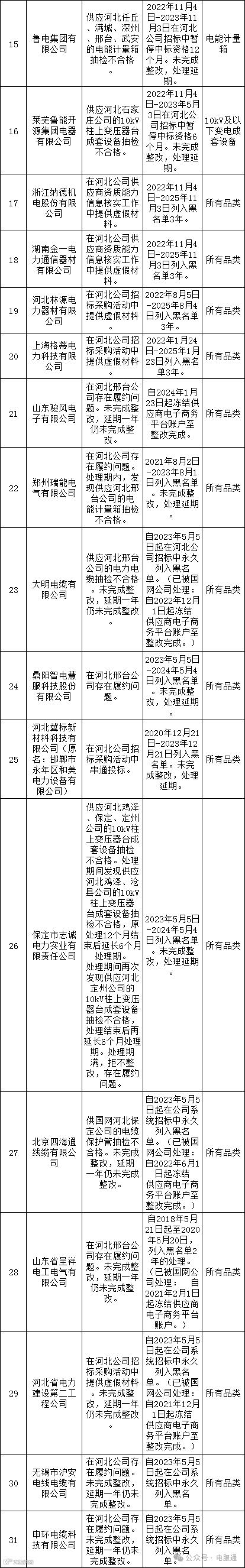 为促进供应商诚信履约,保证产品质量,确保电网建设顺利进行及安全可靠供电,对出现重大产品质量问题、履约不诚信等问题的供应商进行了处理。具体处理情况如附件1所示,上述处理措施须在处理期满后,供应商整改并经相关单位或部门验收合格后方可解除。