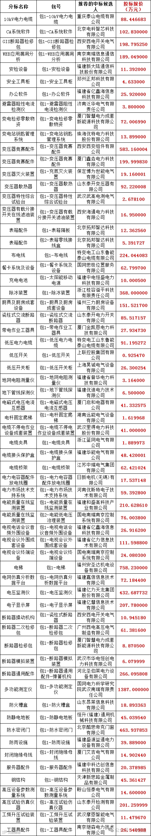 【2.6亿中标】国网福建2024年第四次物资公开招标-中标候选人公示 电服通
