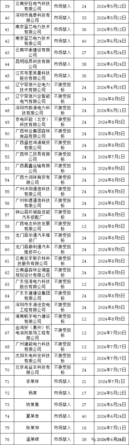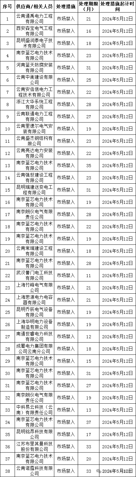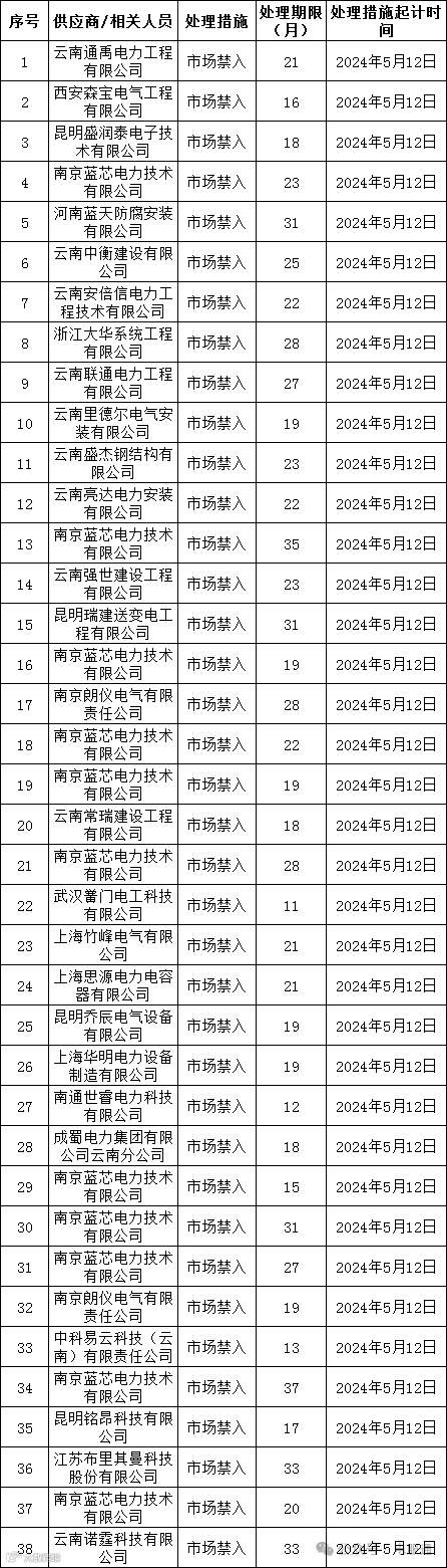为促进供应商诚信服务、保证产品质量、确保电网建设顺利进行及电网安全可靠运行,依据《中国南方电网有限责任公司供应商失信扣分管理细则》的有关规定,南方电网公司对近期出现产品质量问题、履约问题、诚信问题、安全问题的供应商进行了处理。现就具体处理情况公告如下: