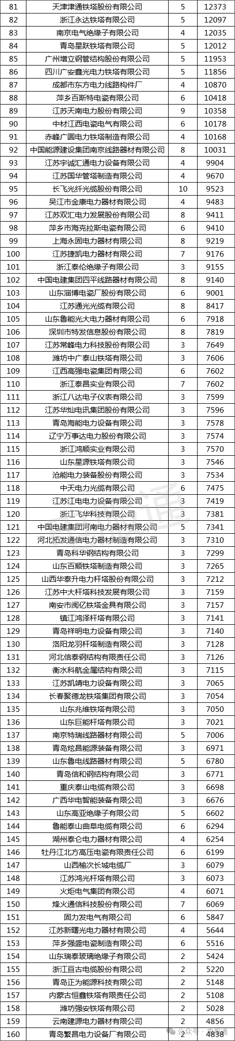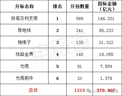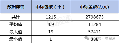 1、江苏中天科技股份有限公司:19个标包,金额57411万元;