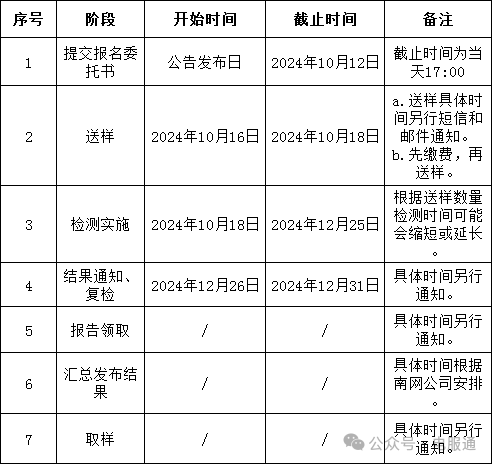 为加强入网设备质量控制与管理,提升配电设备质量水平,南方电网公司拟开展2024年配电自动化设备送样检测工作。本次检测采取供应商自愿送检原则,相关事宜公告如下: