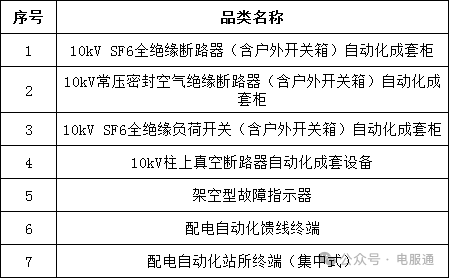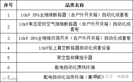 本次配电自动化设备送样检测包括7个品类,详见下表: