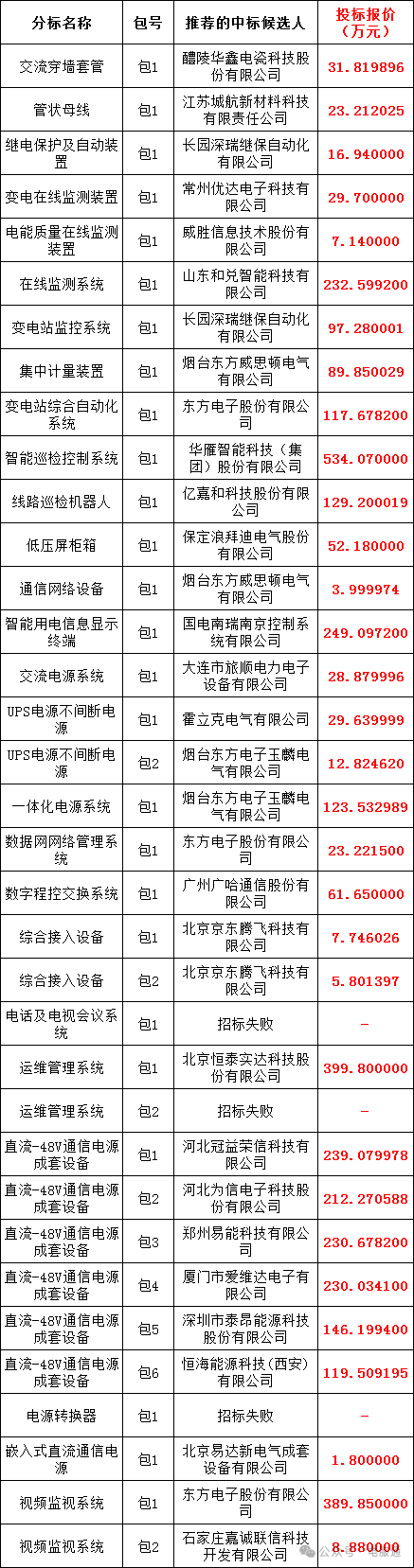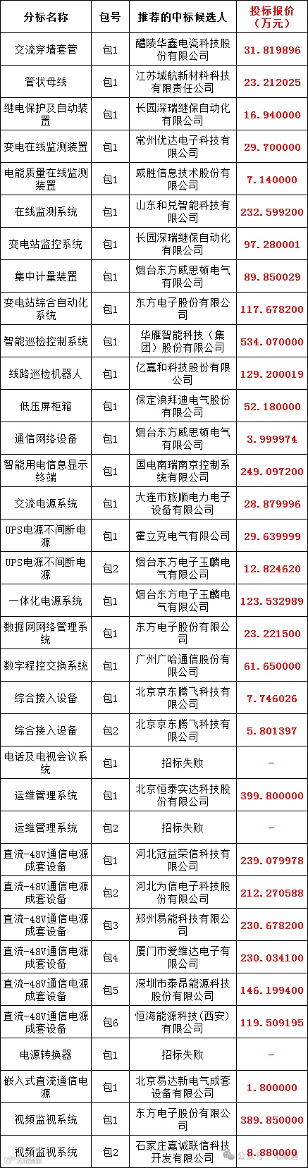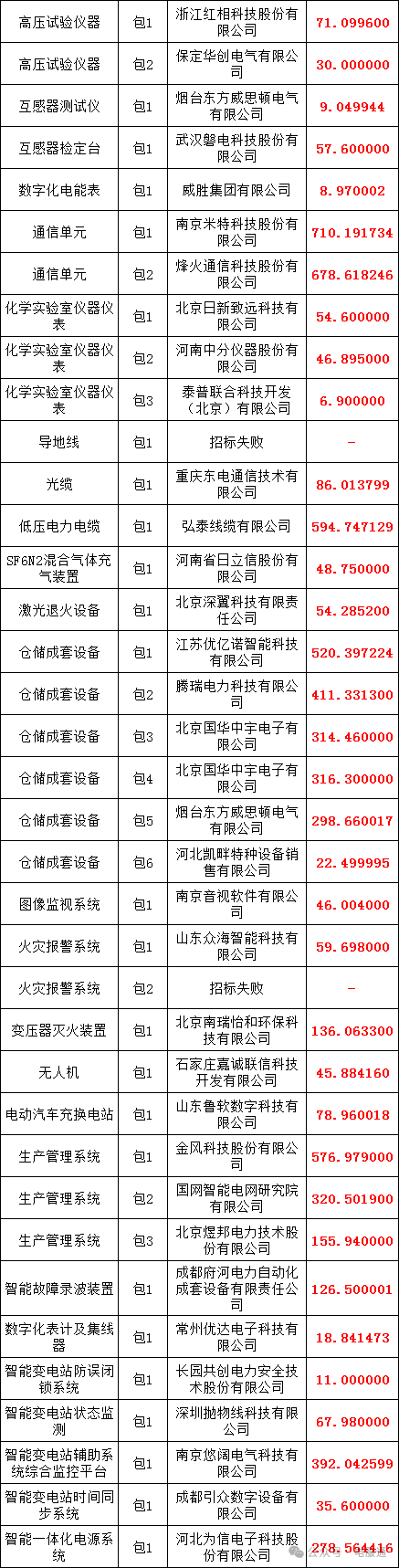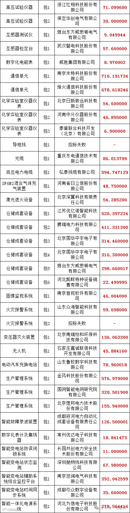 国网冀北2024年第四次物资公开招标采购-中标候选人公示 电服通