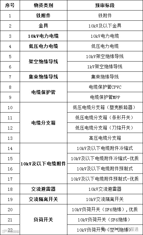 2023年配网铁附件、金具、电缆、保护管、分支箱、避雷器、隔离开关等协议库存招标