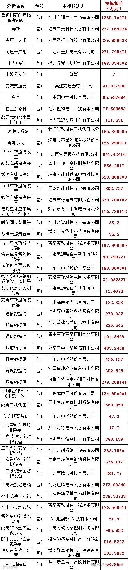 国网江西省电力有限公司2024年第二次物资公开招标采购项目评标工作已经结束,依据对中标候选人公示的规定,现将评标委员会推荐的中标候选人予以公示,公示期3日。投标人或者其他利害关系人若对评标结果有异议的,请在中标候选人公示期间以书面形式(传真或电子邮件)提出。