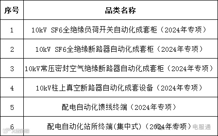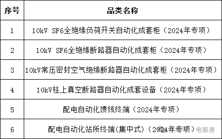 本次配电自动化设备(2024年专项)送样检测包括6个品类,详见下表: