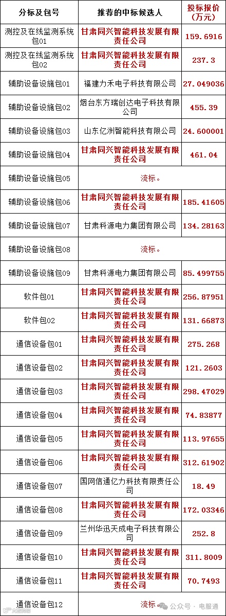 国网甘肃省电力公司2024年第一次专项工程物资公开招标采购工作已经结束,依据对中标候选人公示的规定,现将评标委员会推荐的中标候选人予以公示,公示期3日。投标人或者其他利害关系人若对评标结果有异议的,请在中标候选人公示期间以书面形式(传真)提出。