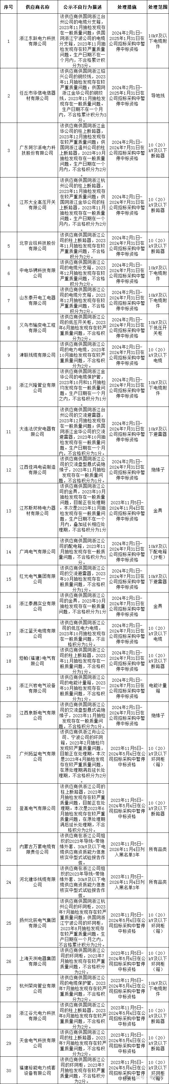 国网浙江关于供应商不良行为处理情况的通报(2024-01) 电服通