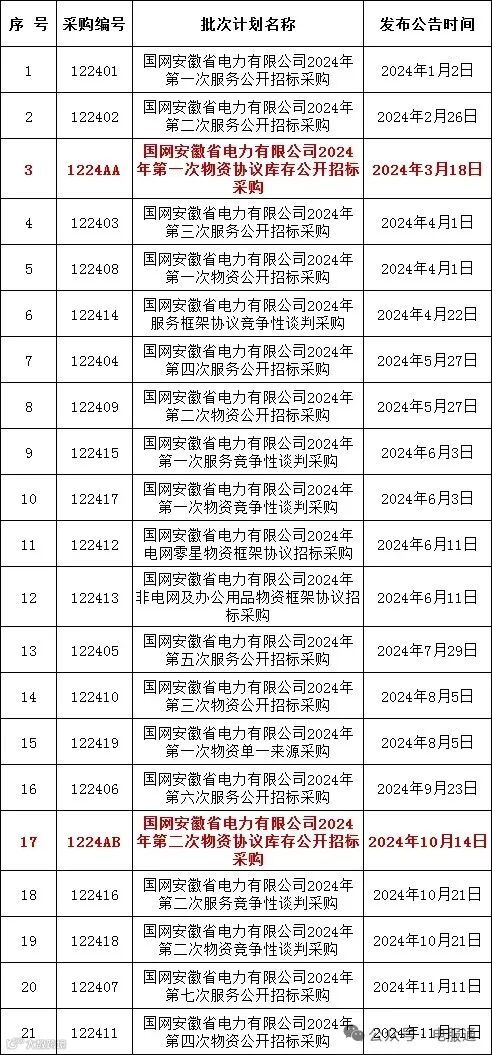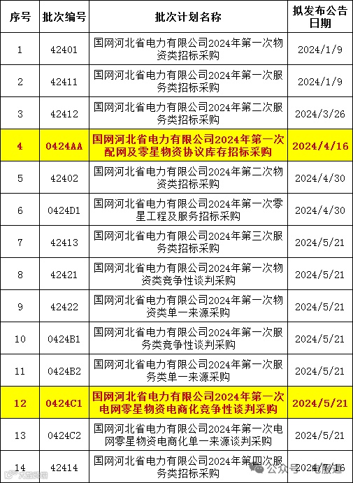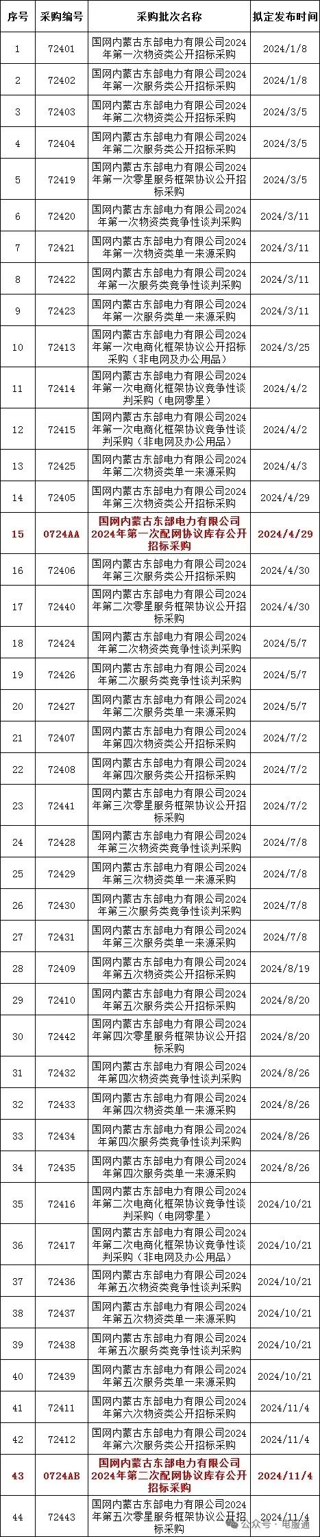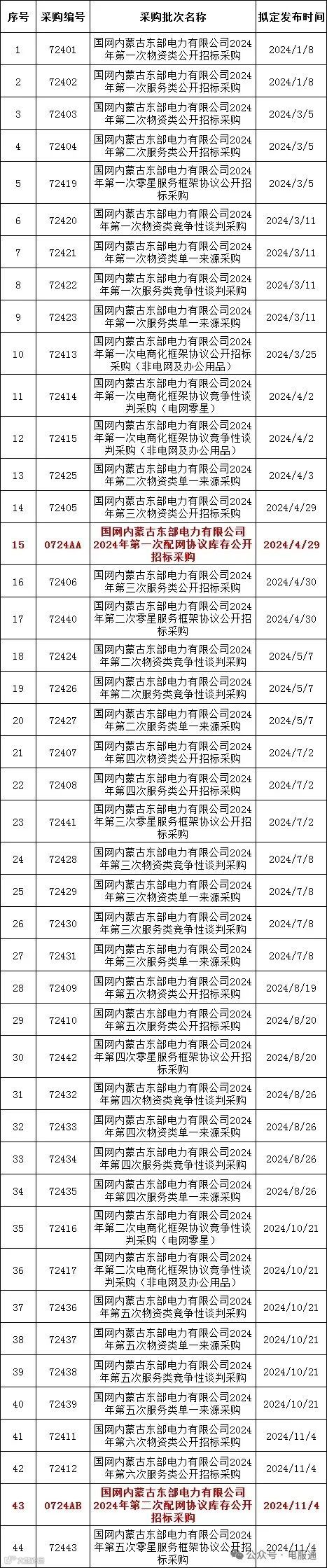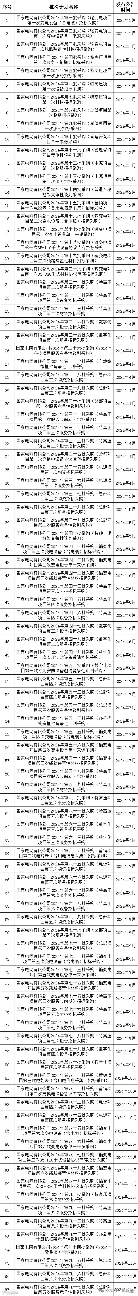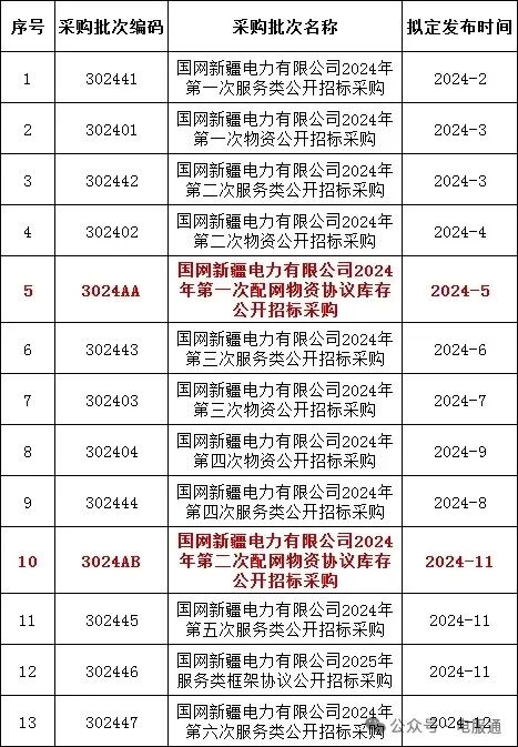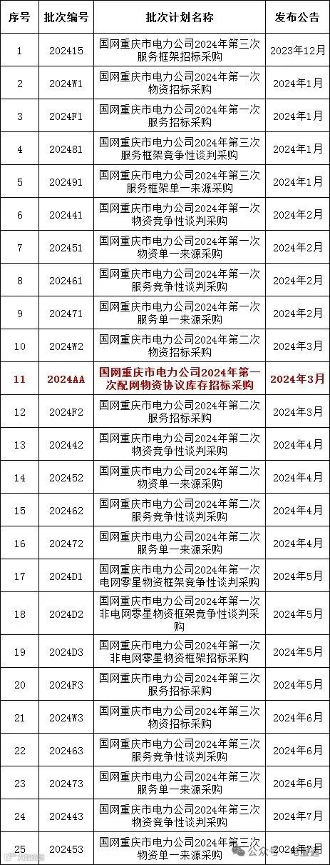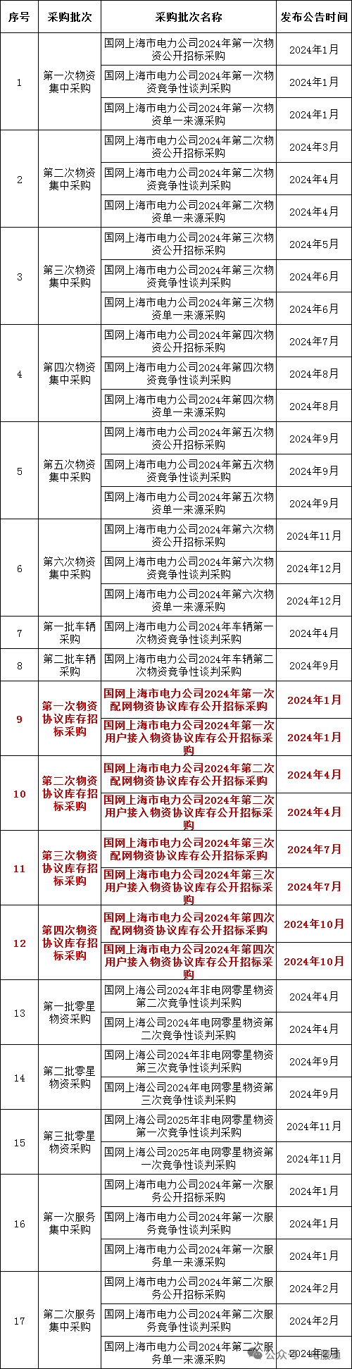 2024年采购批次安排公示