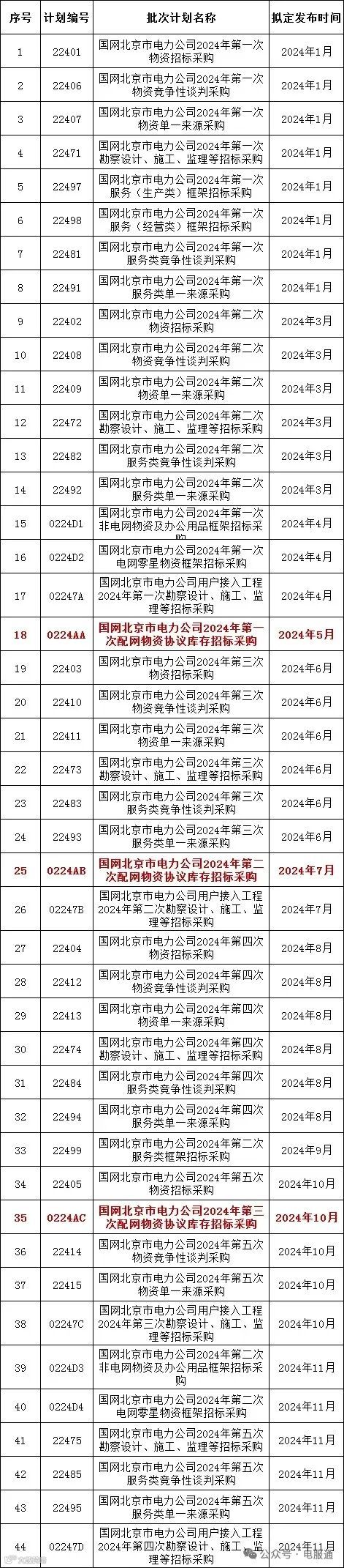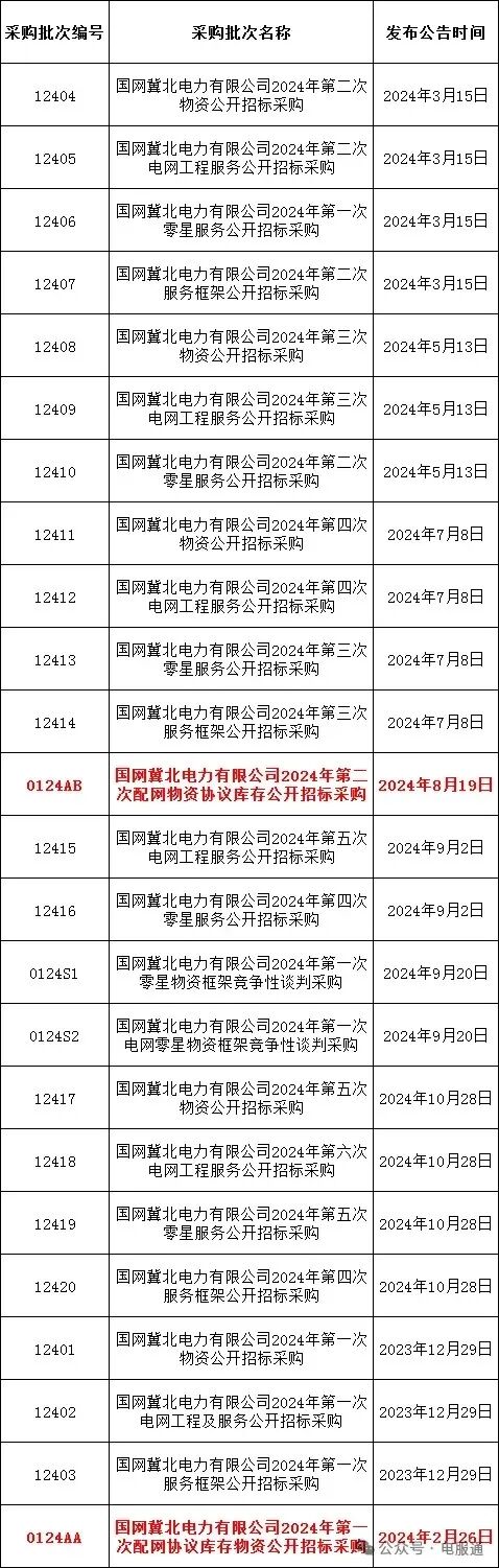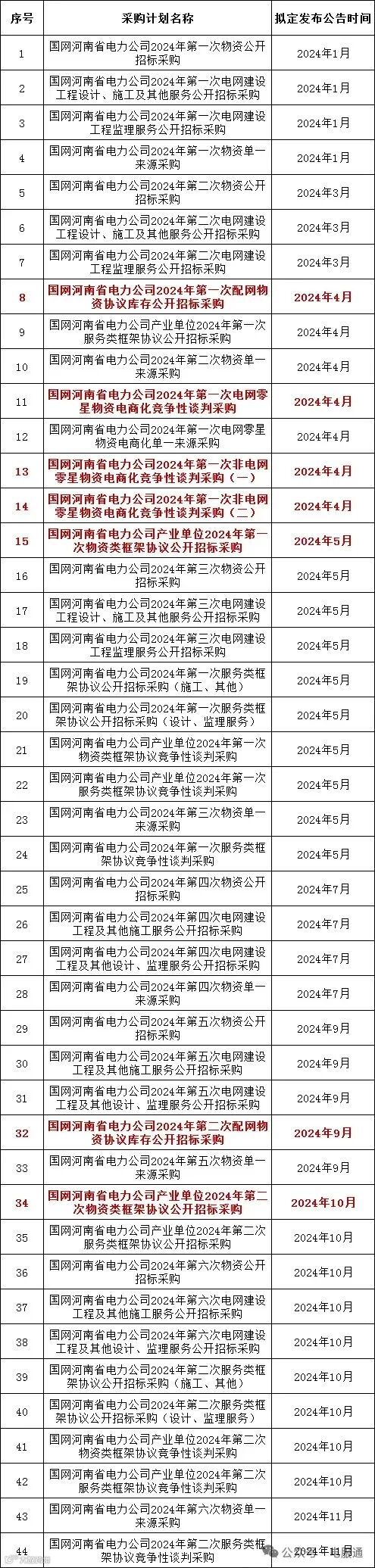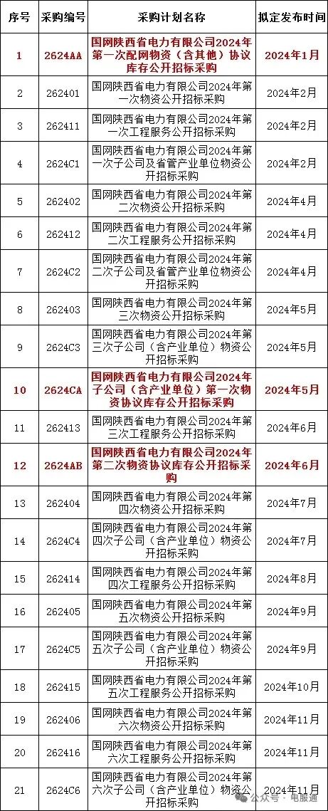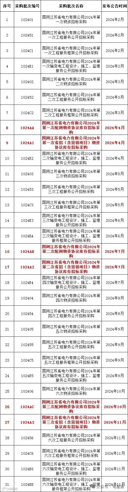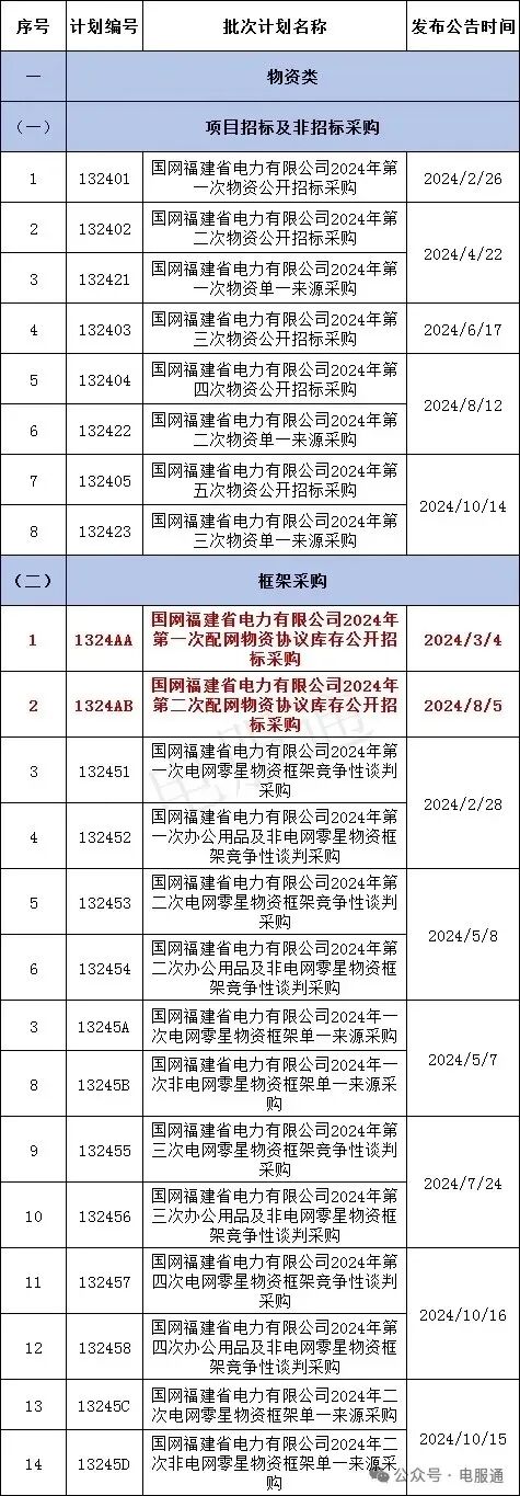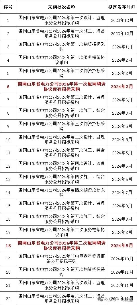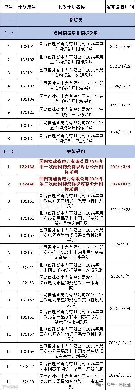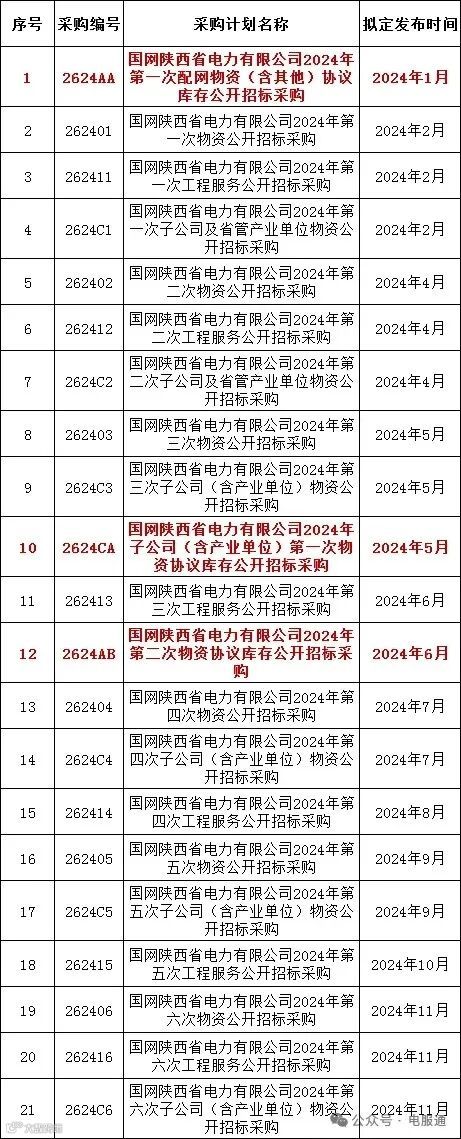 2024年采购批次安排公示