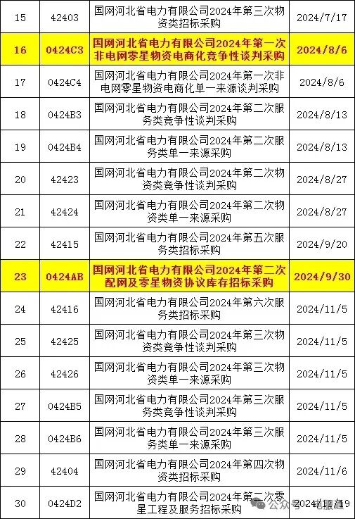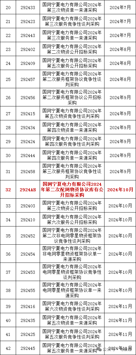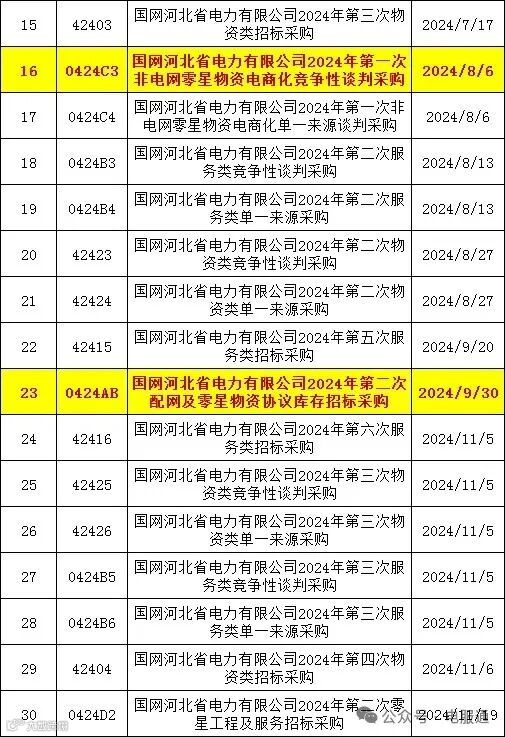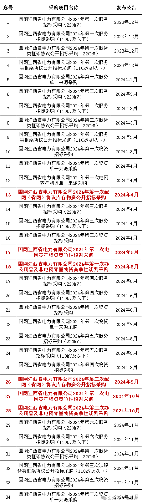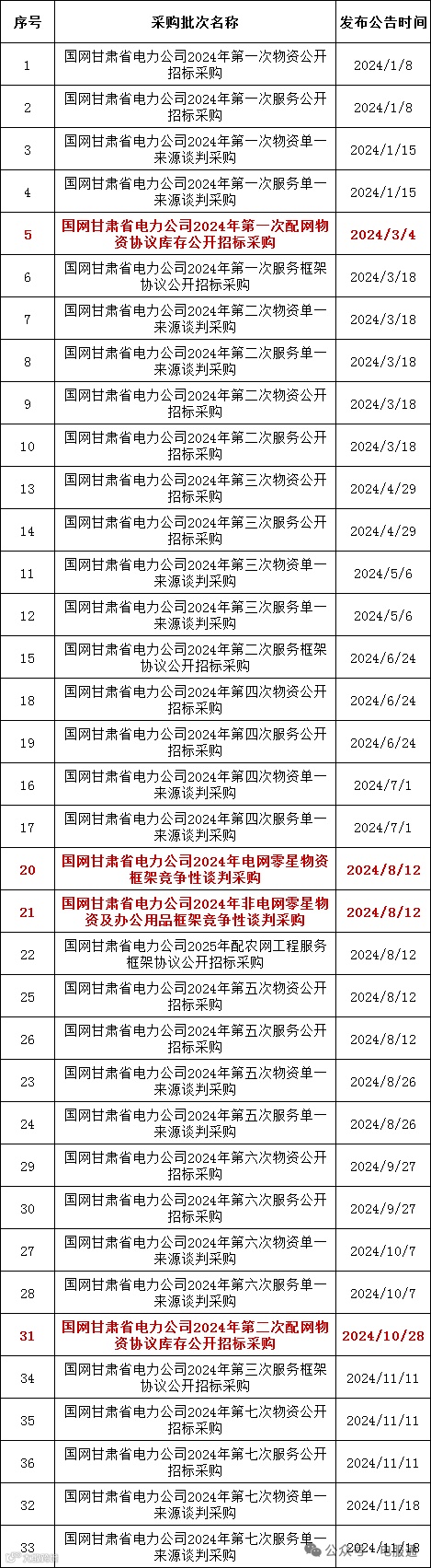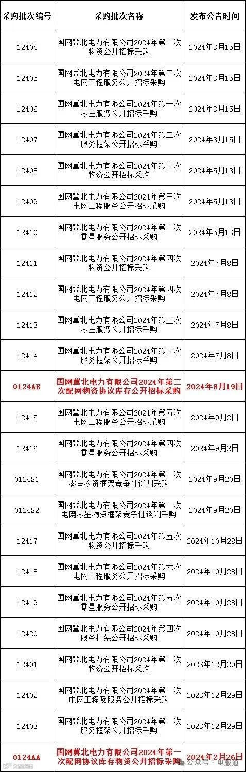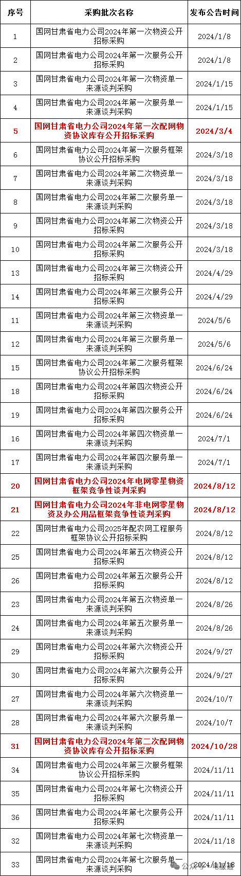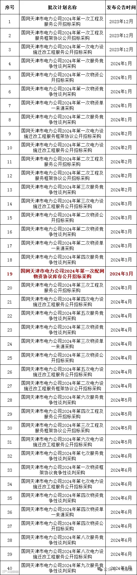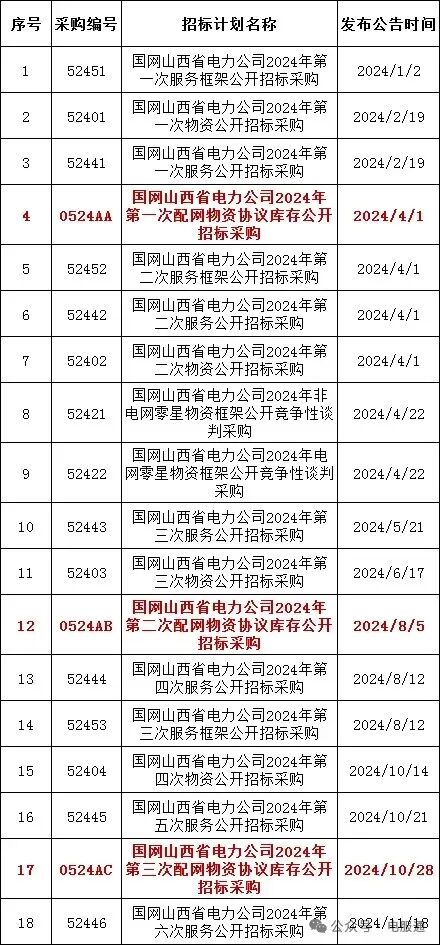 2024年采购批次安排公示