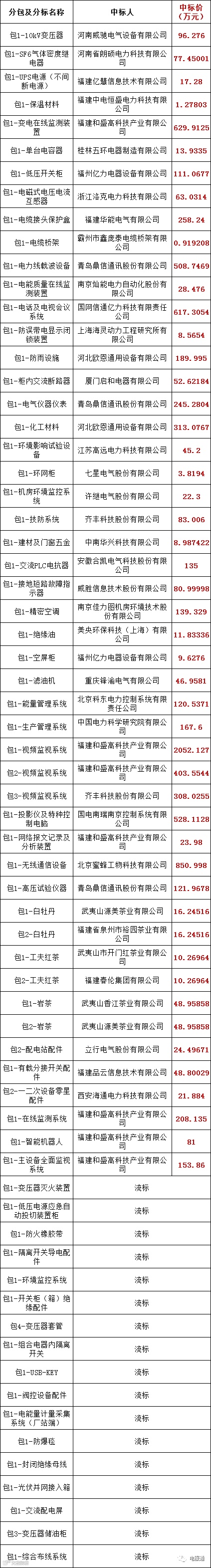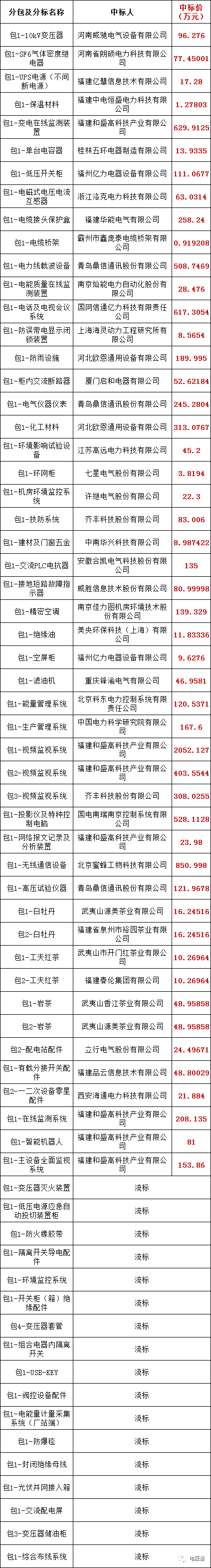 国网福建省电力有限公司2023年新增第二次物资公开招标采购项目的中标候选人公示活动已经结束,现将中标人名单公告如下: