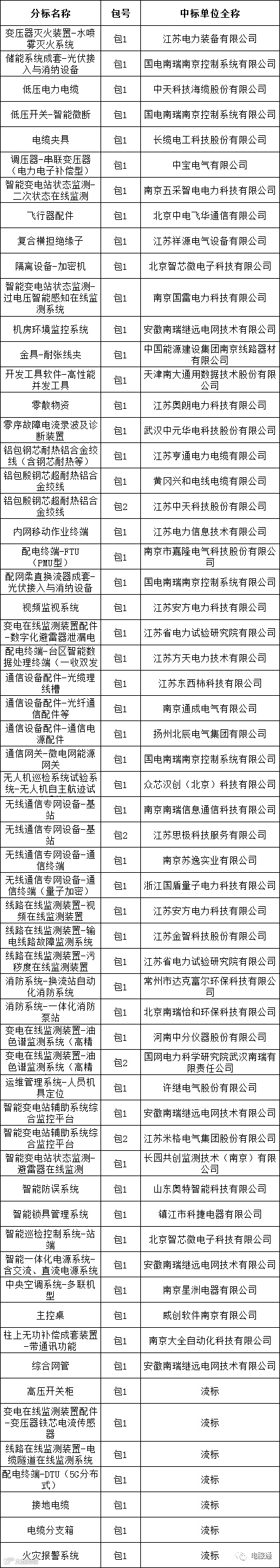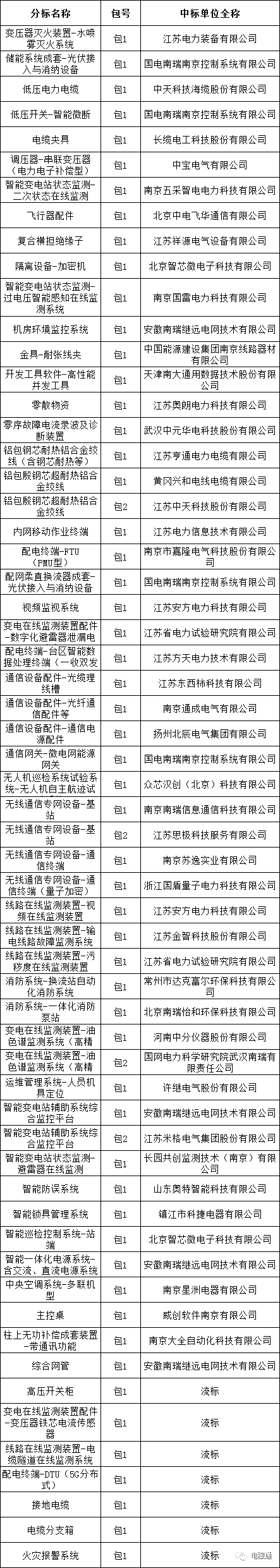 国网江苏省电力有限公司2023年第六次物资招标采购的中标候选人公示活动已经结束。现将中标人名单公告如下: