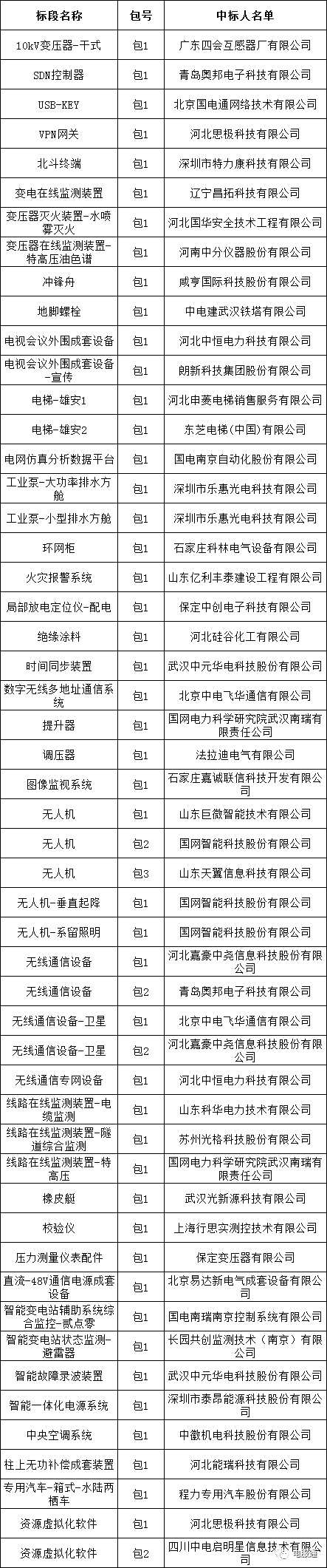 国网河北省电力有限公司2023年第四次物资类公开招标采购项目的中标候选人公示活动已经结束,现将中标人名单公告如下: