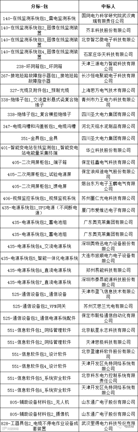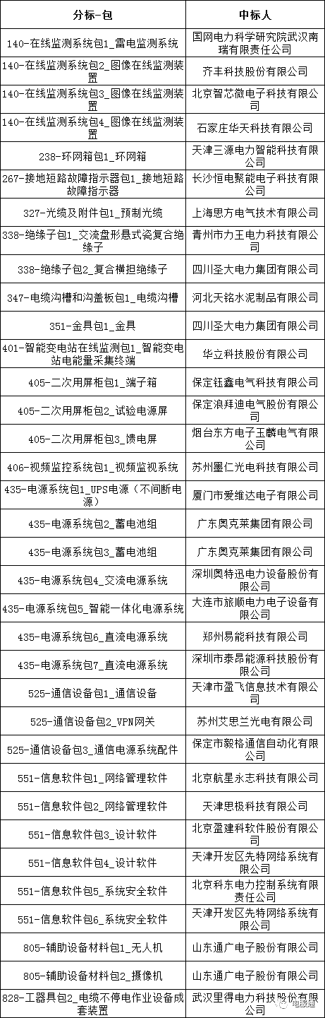 国网天津市电力公司2023年第八次物资招标采购的中标候选人公示活动已经结束。现将中标人名单公告如下: