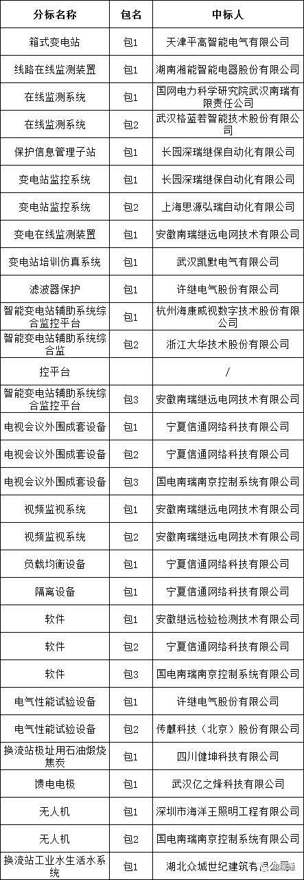 国网宁夏电力有限公司2023年第四次物资公开招标采购的中标候选人公示活动已经结束。现将中标人名单公告如下: