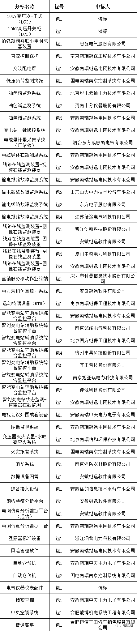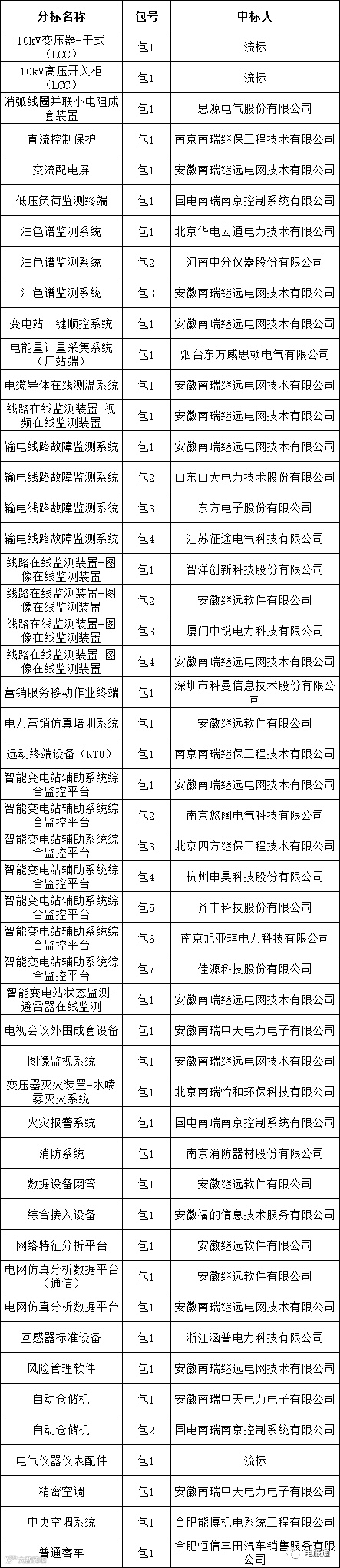 国网安徽省电力有限公司2023年第三次物资公开招标采购的中标候选人公示活动已经结束。现将中标人名单公告如下: