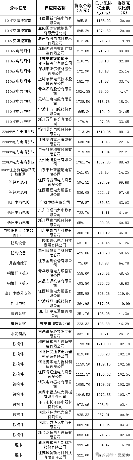 本期小编统计国网江西2023年三个协议库存执行情况,招标金额共计70亿: