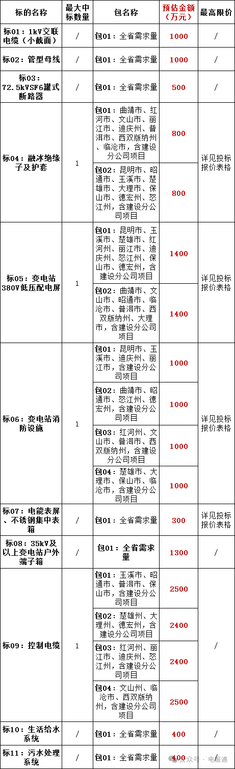 【2.3亿招标】云南电网2024年第1批主网设备框架采购公开招标 电服通