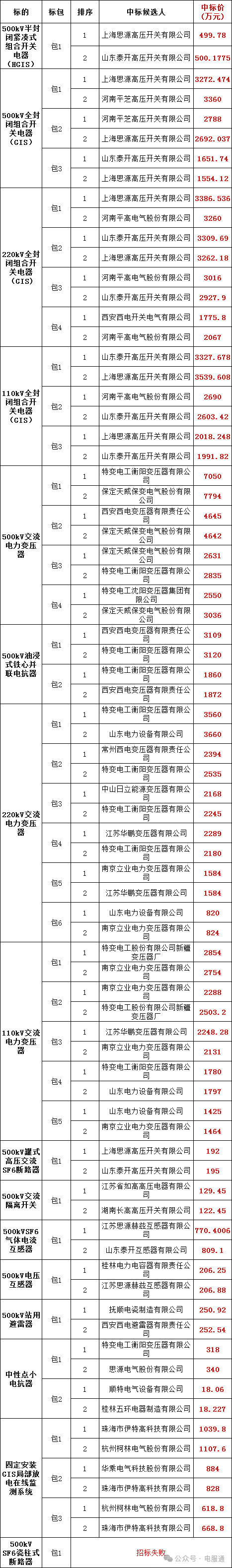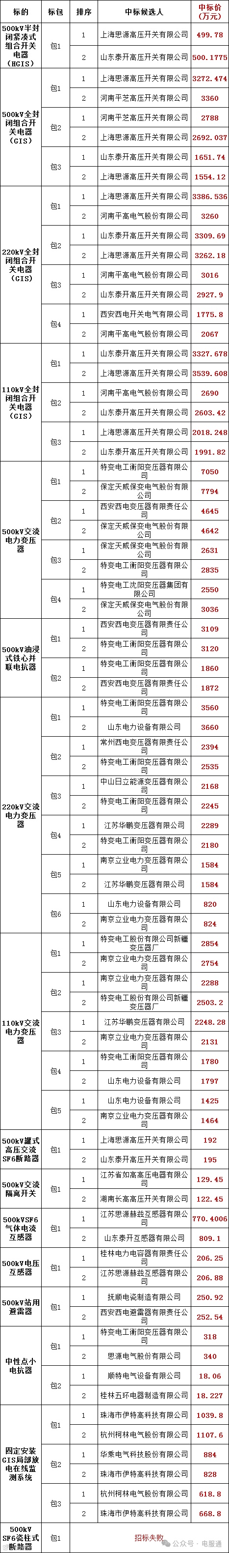 南方电网公司2023 年主网一次设备第五批批次招标项目,经评标委员会评审,现将中标候选人公示如下:
