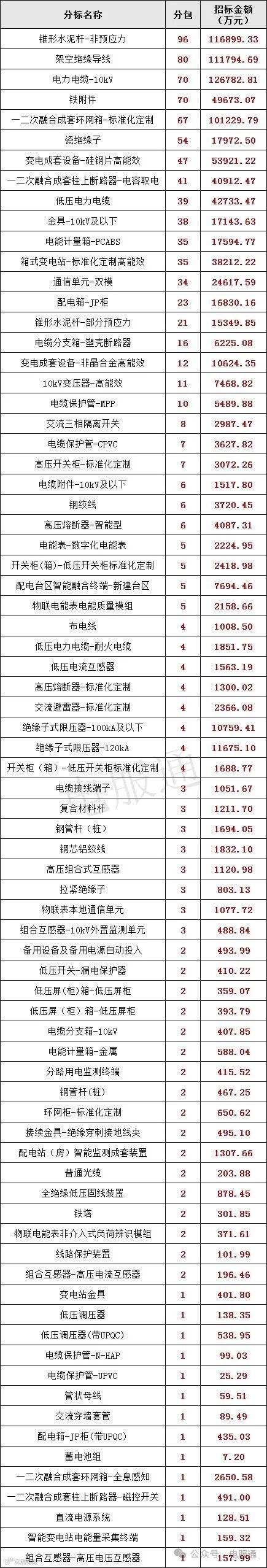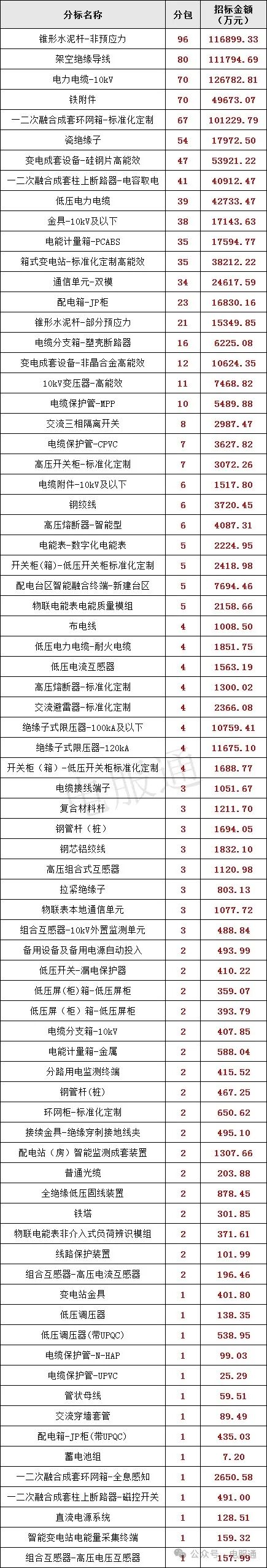 两个批次协议库存共计:76个标段,963个标包,和很多省公司一样,10KV电缆的金额及锥形水泥杆-非预应力的分包依旧排名第一。
