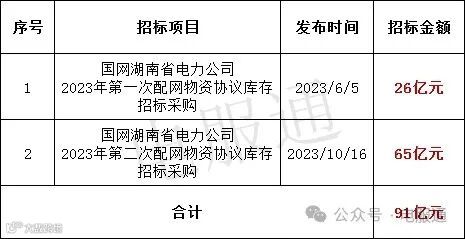 国网湖南省电力公司2023年共发布两批协议库存招标: