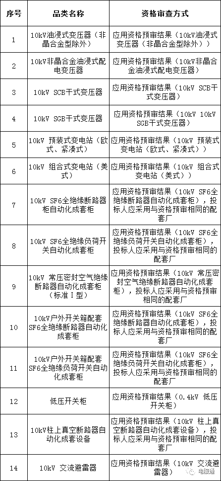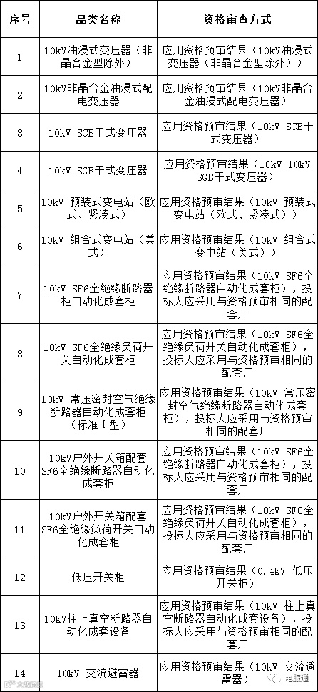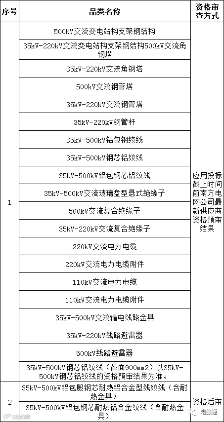 (八)资格审查方式:应用投标截止时间前南方电网公司最新供应商资格预审结果,具体见下表: