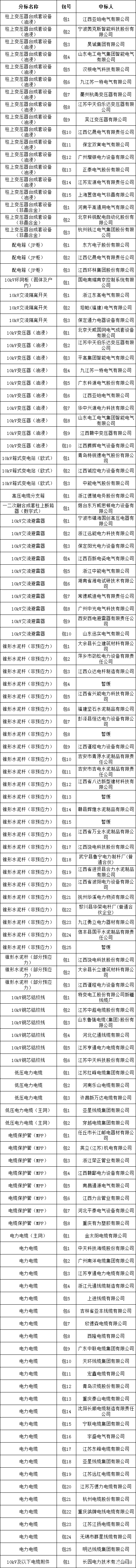 国网江西省电力有限公司2023年第三次配网(省网)协议库存物资公开招标采购项目的中标候选人公示活动已经结束。现将中标人名单及有关事项公告如下: