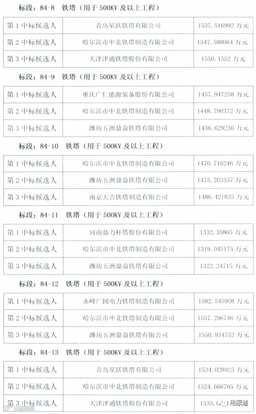 内蒙古电力(集团)有限责任公司2023年固定资产投资项目应急七排(基建工程)设备材料招标采购项目的评标工作已结束,现将评标结果公示如下: