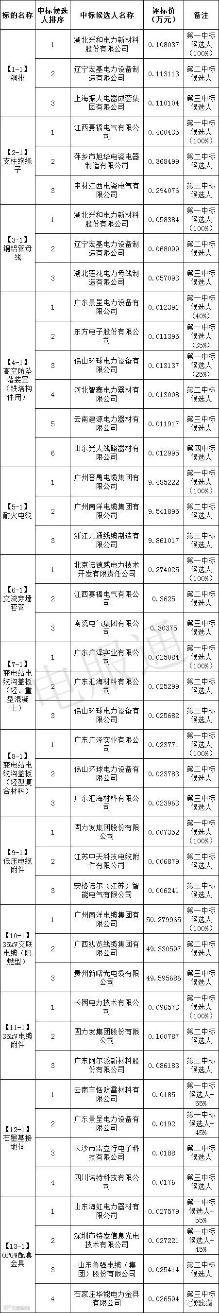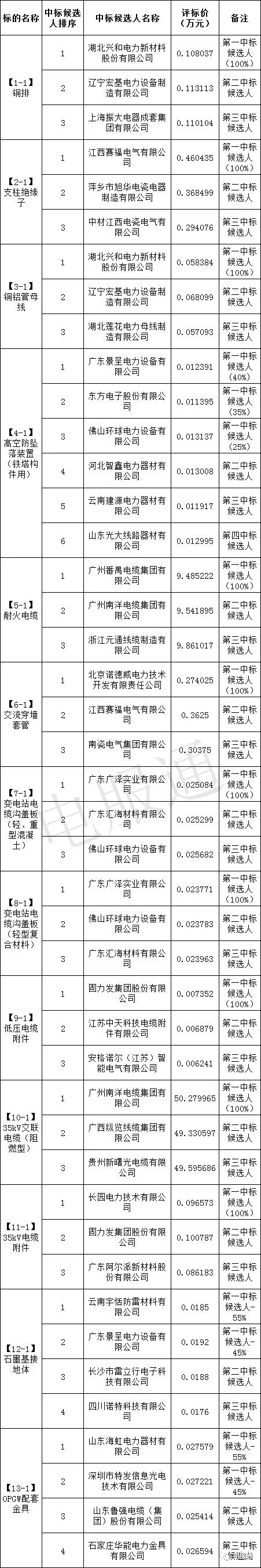 贵州电网有限责任公司2023年第二批省级集中采购物资(材料)框架招标经评标委员会评审,现将中标候选人公示如下: