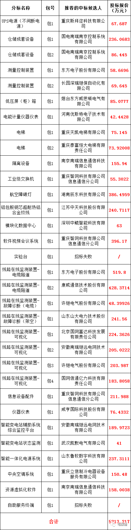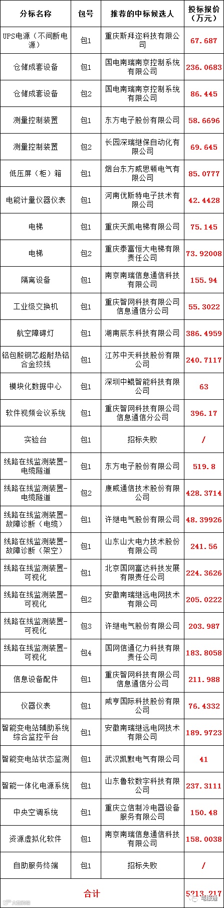 国网重庆市电力公司2023年第五次物资公开招标采购项目评标工作已经结束,依据对中标候选人公示的规定,现将评标委员会推荐的中标候选人予以公示:
