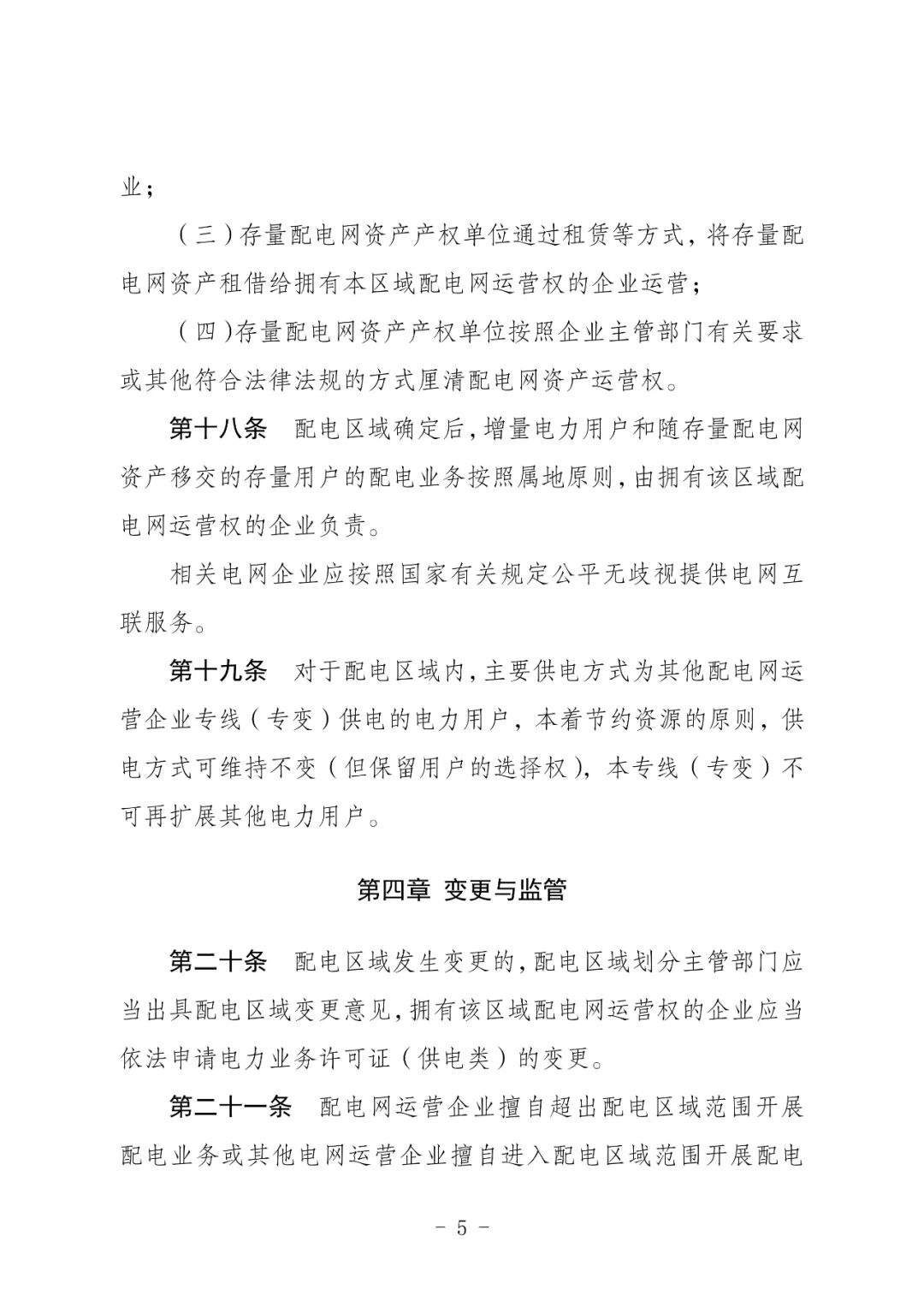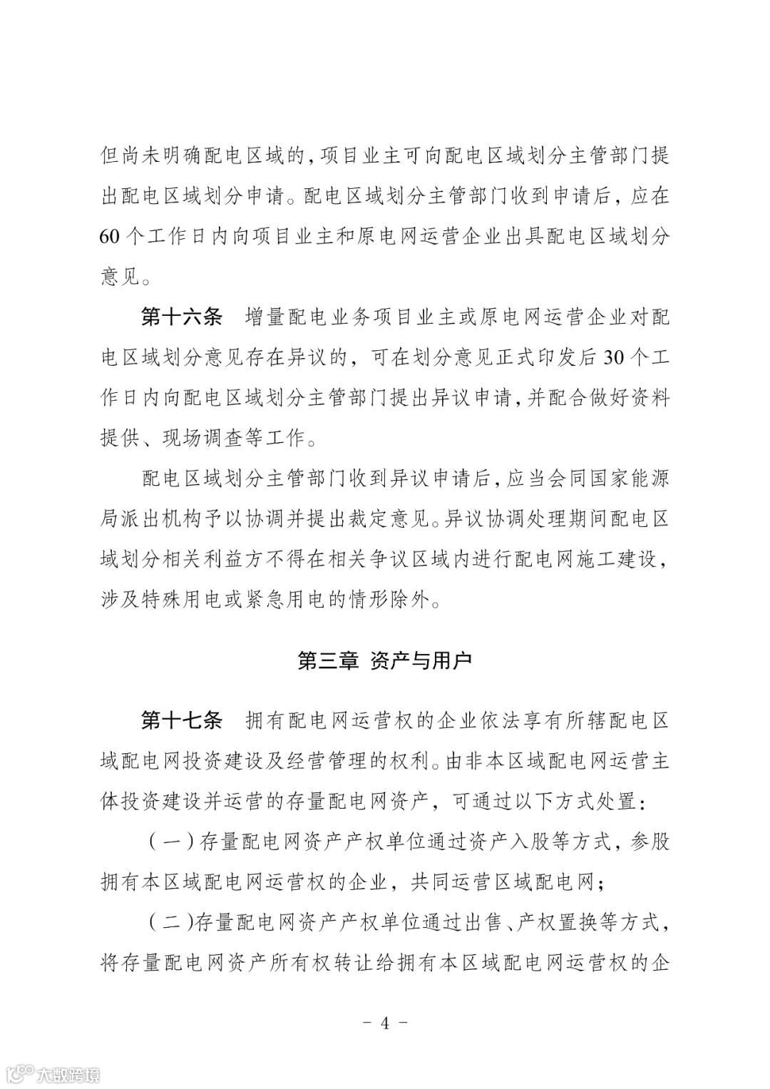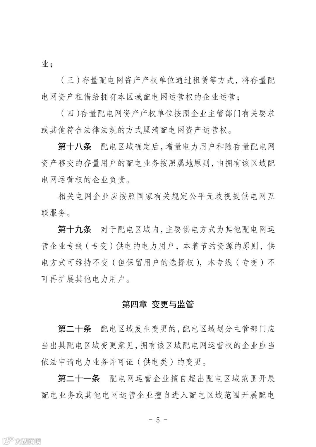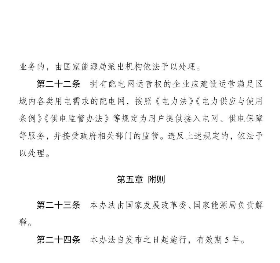 《征求意见稿》特别强调,在一个配电区域内,只能有一家企业拥有该配电网运营权,按照有关规定履行电力社会普遍服务、保底供电服务和无歧视提供配电服务义务,退出配电业务时履行配电网运营权移交义务,确保电网安全稳定运行和电力可靠供应。