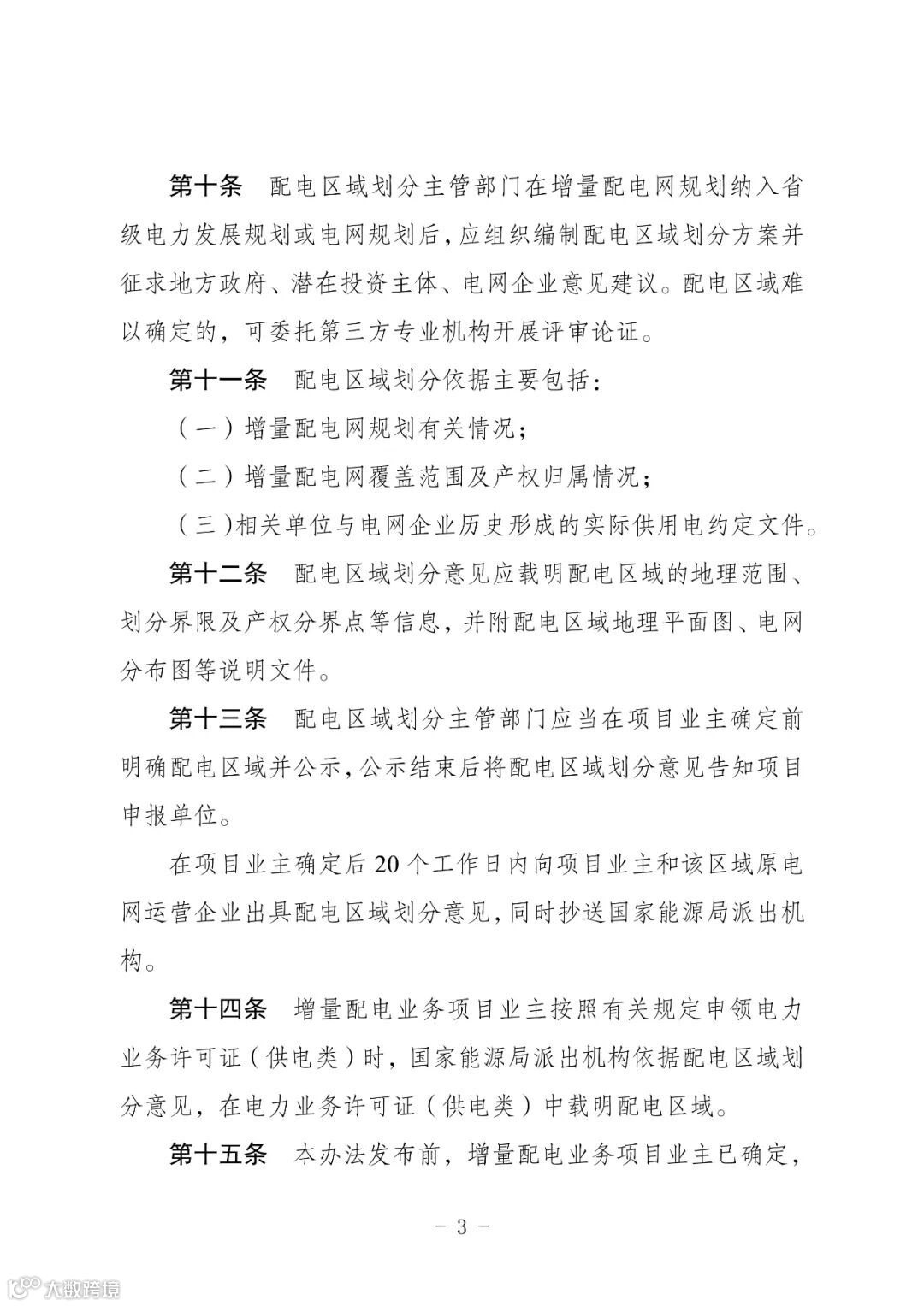 《征求意见稿》还指出,配电区域划分依据主要包括增量配电网规划有关情况、增量配电网覆盖范围及产权归属情况、相关单位与电网企业历史形成的实际供用电约定文件。