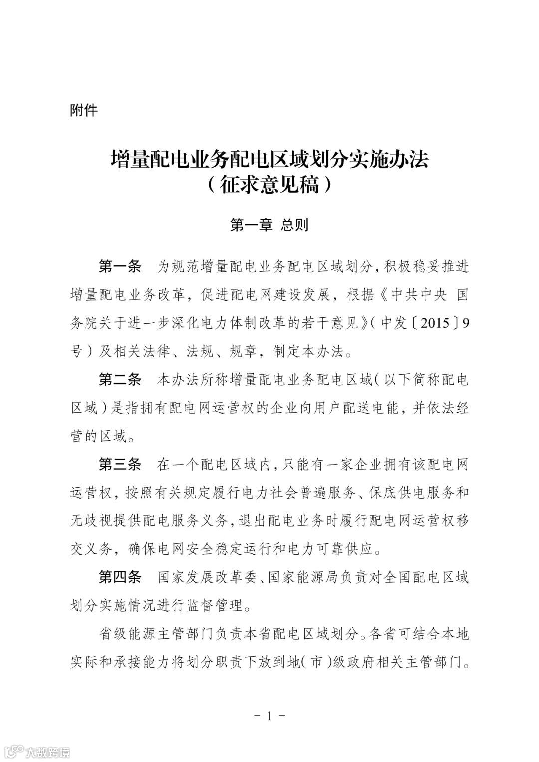 9月25日,国家发改委发布《增量配电业务配电区域划分实施办法(征求意见稿)》(以下简称《征求意见稿》)。