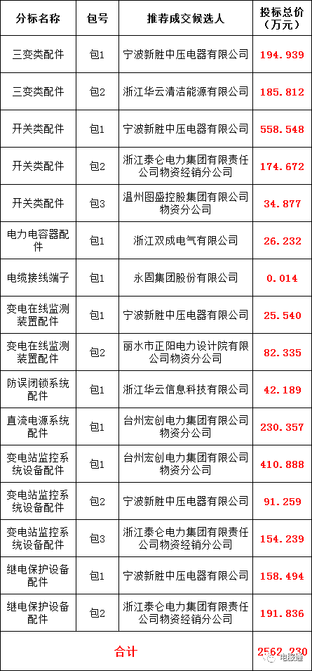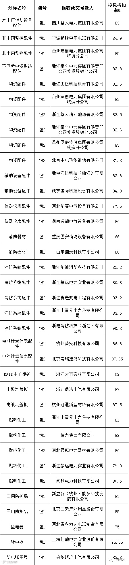 国网浙江省电力有限公司2023年第三次物资电商化采购竞争性谈判(电网零星物资)项目的评审工作已结束,依据对成交候选人公示的规定,现将评审委员会推荐的成交候选人予以公示,公示期3日。供应商或者其他利害关系人若对评审结果有异议的,请在成交候选人公示期间以书面形式(传真)提出。