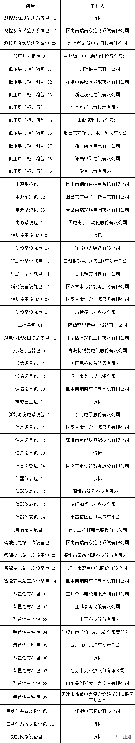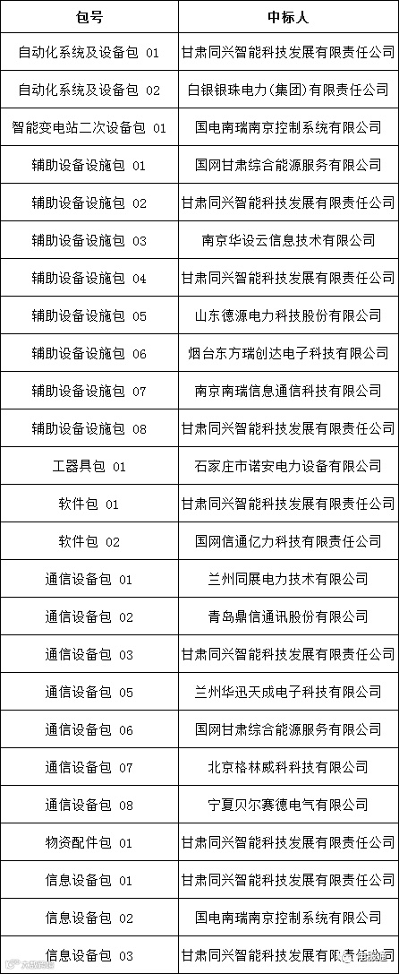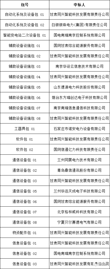国网甘肃省电力公司2023年新增第五次物资公开招标采购项目的中标候选人公示活动已经结束。现将中标人名单公告如下: