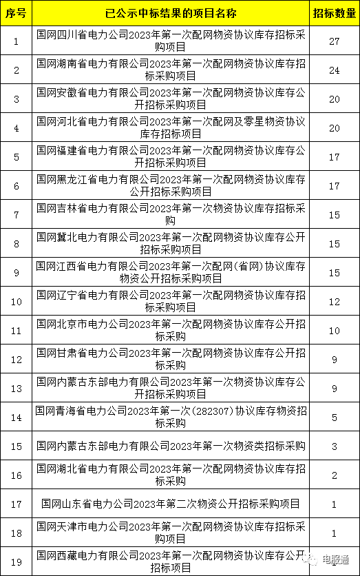 截至2023年7月13日,国网已公示18个省市电力公司19个招标采购项目变压器台成套设备的中标结果,详情如下: