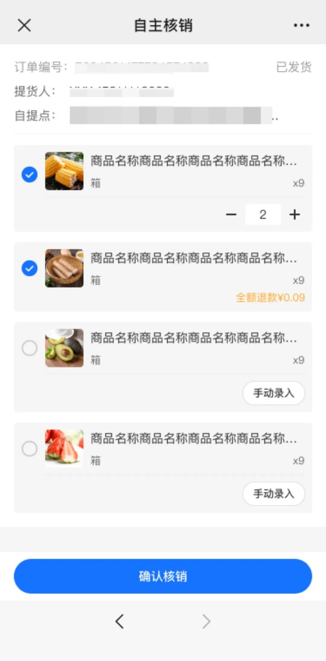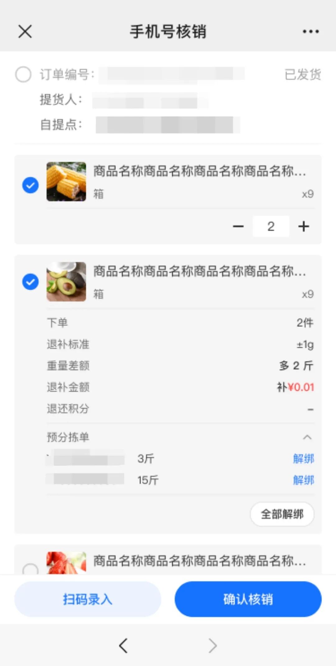 为了帮助商家实时同步库存数据,减少人工沟通成本,提升订单效率;同时让消费者拥有更灵活的取货选择,本次上线了“订单支持单商品核销”功能。