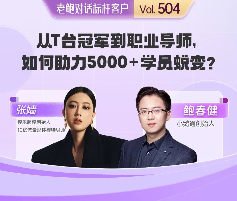 客户介绍:老鲍对话标杆第504期,邀请了模乐超模创始人,10亿流量形体模特导师——张嫱老师