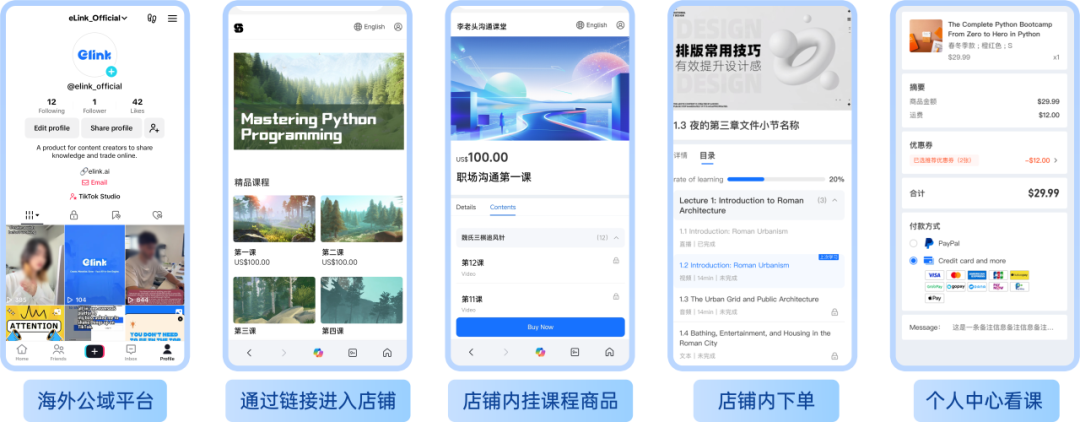 用户点击eLink链接进入店铺后,完成支付并购买课程