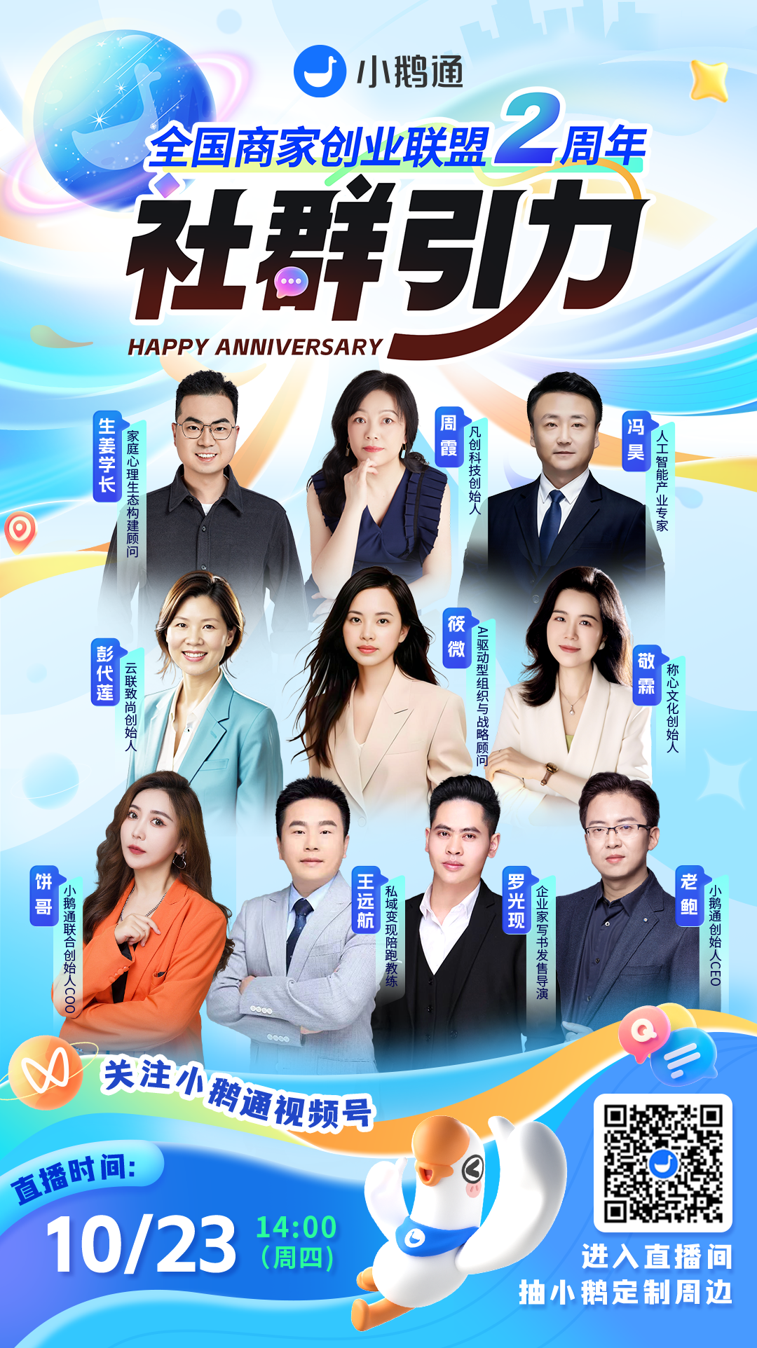 小鹅通全国商家创业联盟两周年"社群引力"现已正式开播!