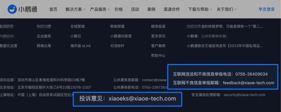 如在小鹅通发现违规内容,用户可以通过小鹅通产品页面的投诉入口以及小鹅通官方渠道的举报电话和邮箱向小鹅通反馈,并尽可能提供相关证据,我们将尽快核查处理。