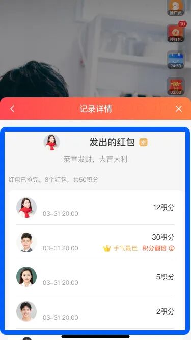 用户领了积分红包后,也可以看到“等级会员积分倍率”,给用户强烈的会员专属权益提示,促进会员成长。
