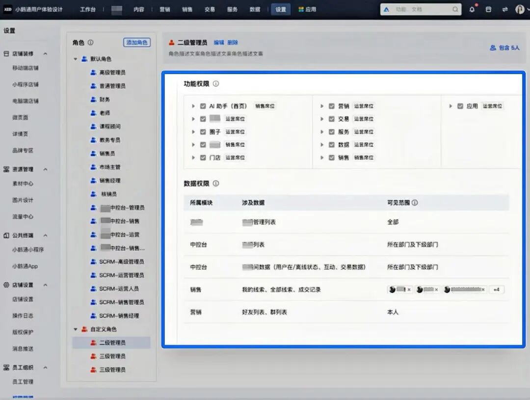 商家朋友们的销售与运营团队在工作中可能会有交叉重合,导致需为同一名员工购买两个席位,运营成本增加。同时,也会有数据隔离、权限隔离的需求。此前员工角色的管理范围的操作门槛较高,不利于大家的理解。