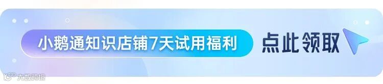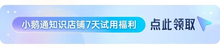 各位小鹅的新朋友,如果你还没有知识店铺,立即添加下方二维码,回复【免费试用】即可立即领取7天知识店铺免费试用权益。