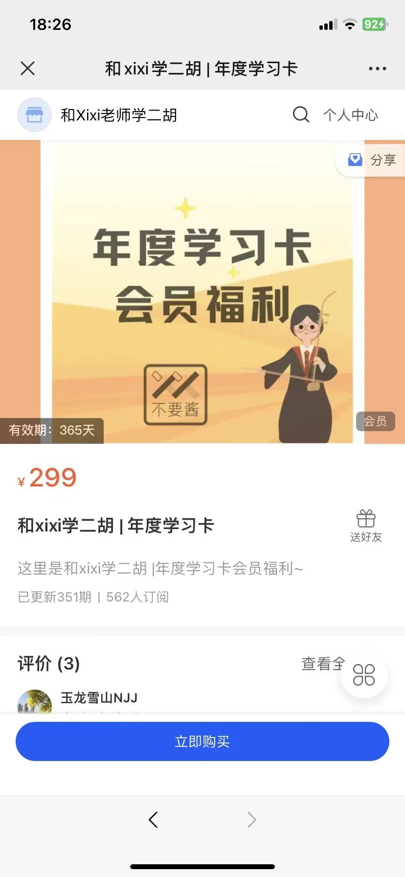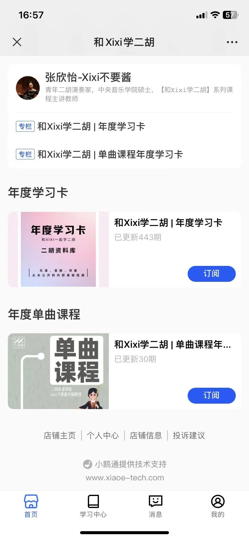 现在,xixi老师在小鹅通开通了自己的知识店铺“和xixi学二胡”,通过一系列线上培训课程,完成了知识变现。